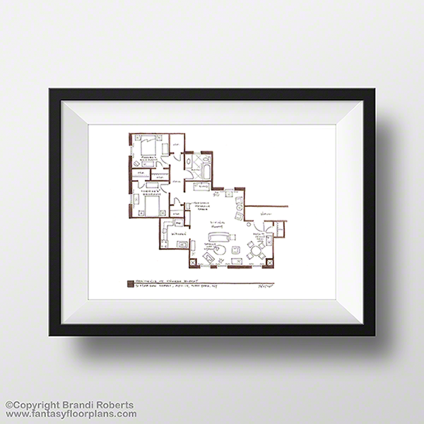 This is an original hand-drawn sketch by Brandi Roberts of Phoebe Buffay's fictional Big Apple apartment. Archival black ink on 11"x17" translucent paper. Signed by the artist. Shipped flat.